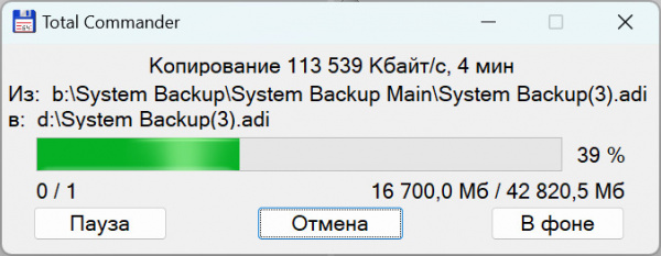 Вот, смотрите - копирование 40-гигабайтного файла с моего NAS (не самого быстрого, у меня их два) на локальный SSD моего ПК: скорость 113 мегабайт в секунду! В обратную сторону - тоже порядка 112 мегабайт в секунду!