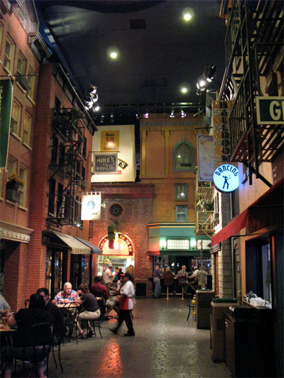 Зашли в отель "Нью-Йорк, Нью-Йорк". Это очень забавное место: там внутри отеля стилизован кусочек Нью-Йорка. Выглядит это примерно так: