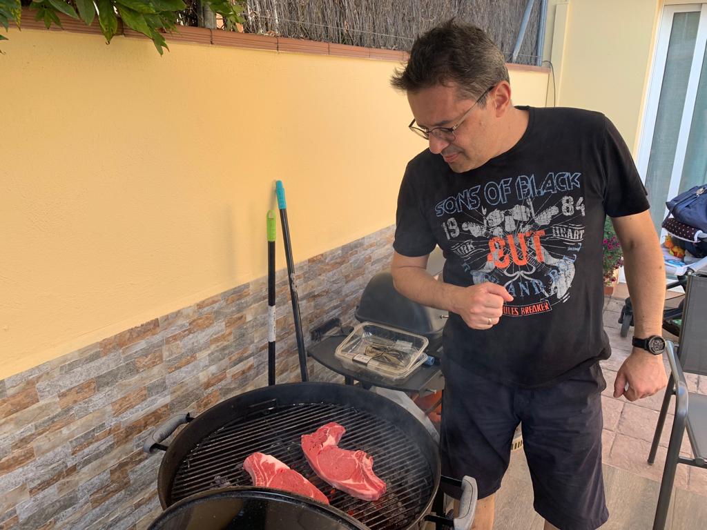 Картина маслом: "Тем временем в далекой Калейе угольный гриль Weber был полностью готов к созданию двух совершенных стейков".