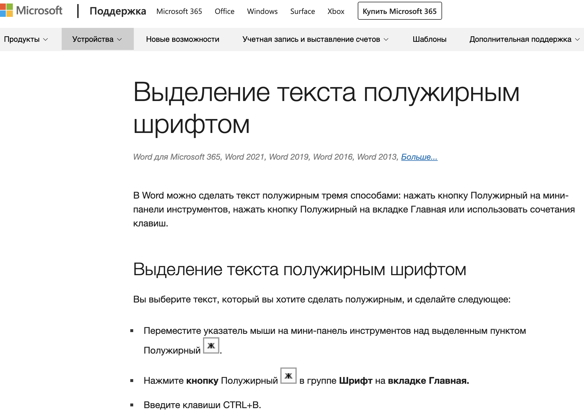 Забавно, что у Майкрософта шрифт называется «полужирным», но на соответствующей кнопке стоит буква «ж», а не «п».