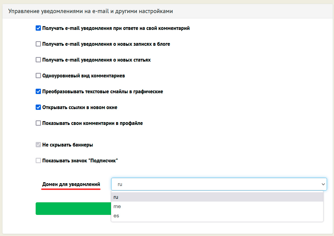 По просьбам трудящихся сделали так, чтобы в личном кабинете пользователя в настройках можно было выбирать, с какого именно домена отправлять все уведомления (и внутренние ссылки будут с соответствующего домена).