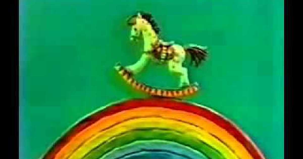 В "Спокойной ночи малыши"тоже детям радугу показывают: и по радуге промчаться на коне....