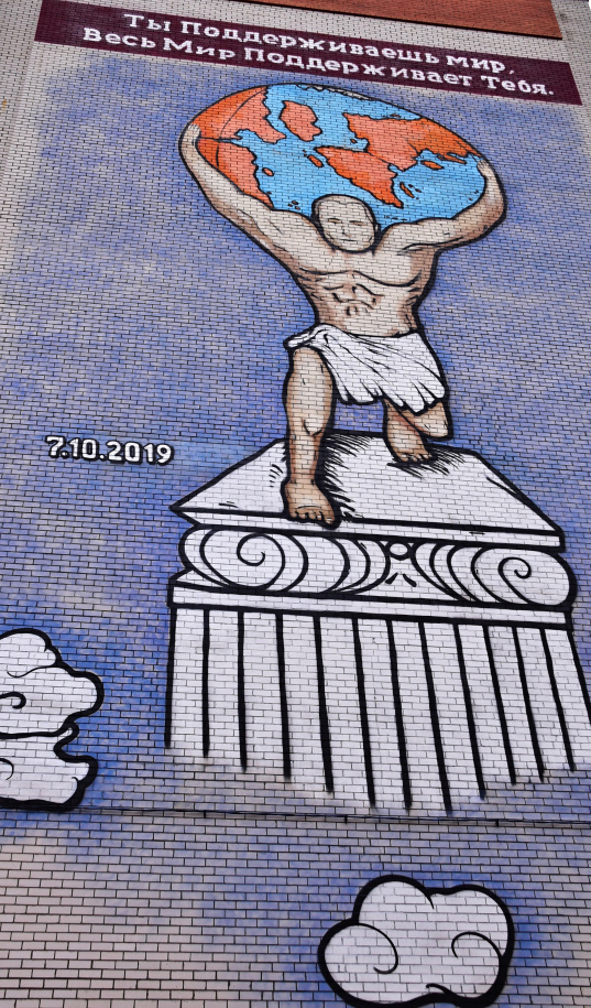 Выбор композиции пришел ему случайно, рассказал художник коломенскому изданию, — «атланты держали небо, мир, и Путин поддерживает мир».