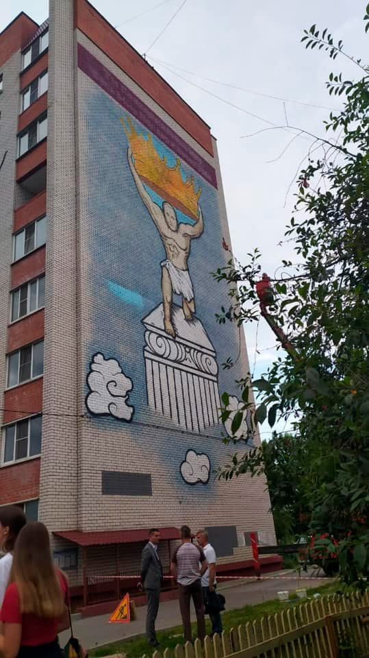 Однако ранним утром 2 июля 2020 года - в аккурат после завершения так называемого голосования за Обнуленного - трое молодых людей пририсовали Атланту корону на месте земного шара. И получился вот такой коронованный голубь мира.