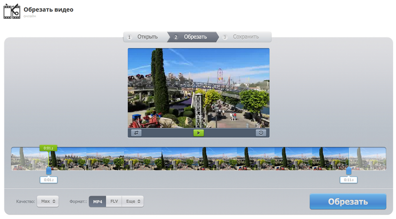 Понадобилось тут один видеоролик подрезать для демонстрации. А возиться доставать VirtualDub или что-то другое - как-то не хотелось. Поискал, что на эту тему есть в онлайне. В первых рядах выдается Online Video Cutter - и он оказался просто отличным: очень простой, наглядный и удобный. Закачиваешь файл, выбираешь временной отрезок, при необходимости кадрируешь, также еще можно развернуть изображение (бывает такое нужно). Нажимаешь кнопку, ролик обрабатывается, далее появляется ссылка "Скачать" (или сохранить в Google Drive, Dropbox). Совершенно бесплатное, даже нет никакой рекламы, ролик получаете совершенно "чистый", без дополнительных надписей и рекламы сервиса (он только свое название в имя файла пишет, но это же элементарно отредактировать, если нужно).