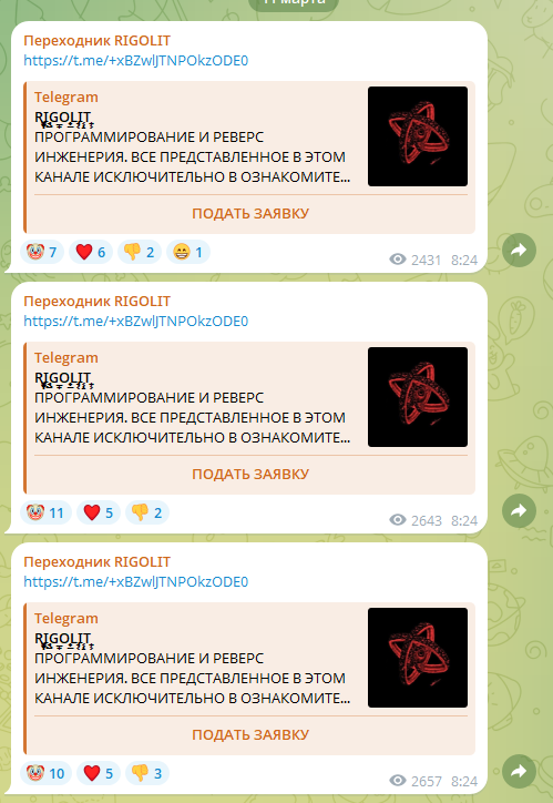 Могу дать ссылку на Телегу.