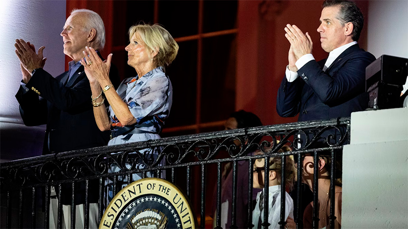 Президент Байден, Джилл и Хантер Байден в Белом доме 4 июля 2023 года. (Том Бреннер для The Washington Post)