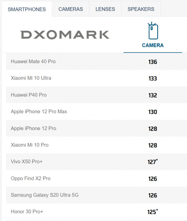 Вот так теперь выглядит табличка "Top 10" лучших камер смартфонов.