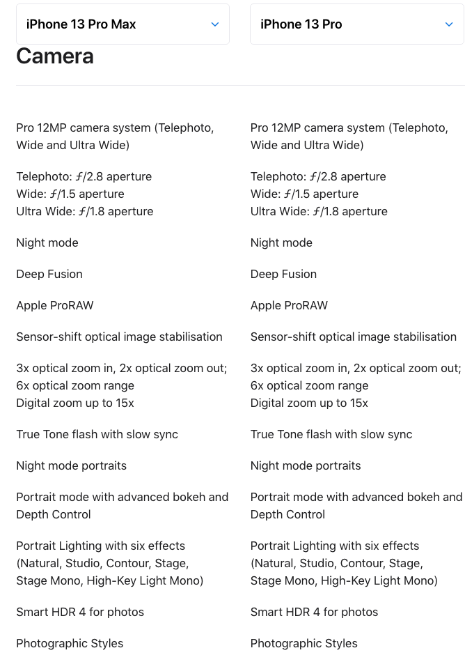 В 13-й модели они одинаковые, это все техноблогеры сразу отметили, но можете проверить сами на сайте Apple.