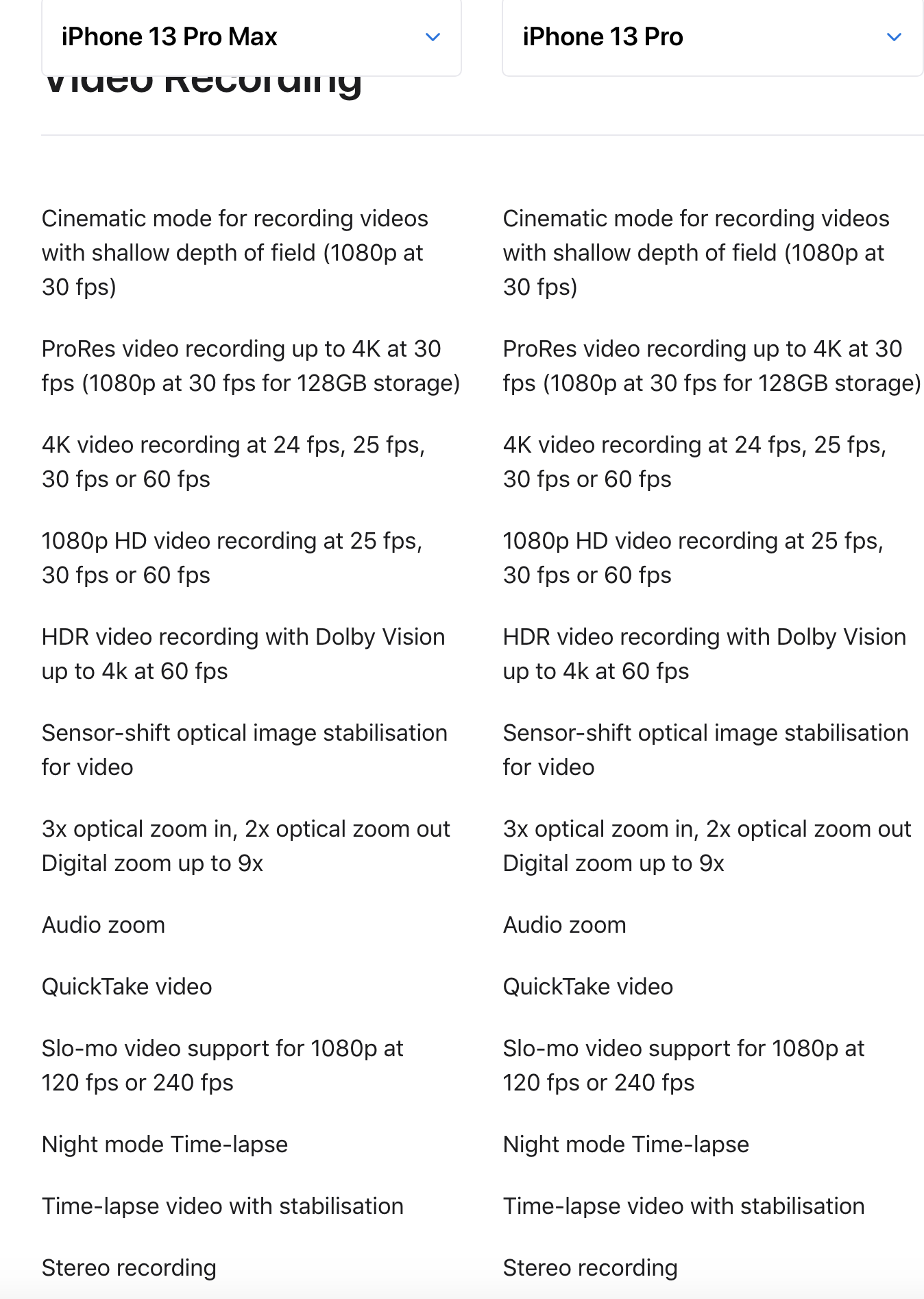 Есть разница в видео между PRO и PRO MAX начиная с версии 512 ГБ