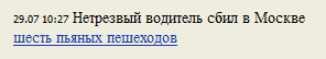 Кстати, пишут, что никто особо не пострадал. Даже нетрезвый водитель от шестерых пьяных пешеходов.