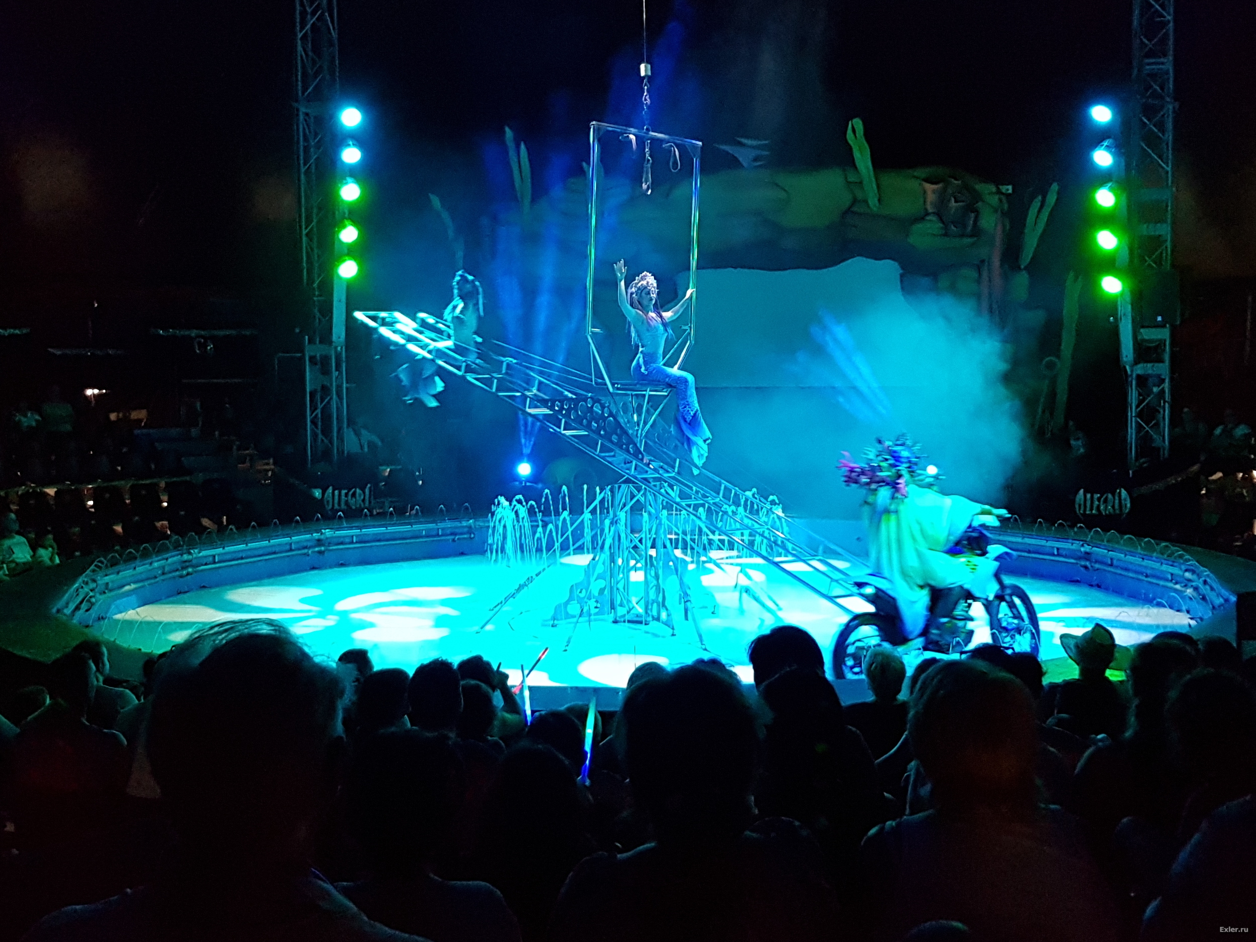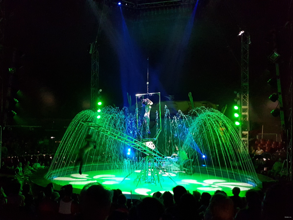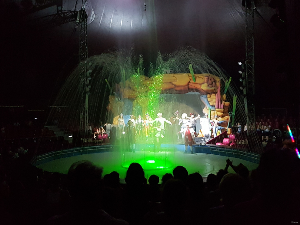 На этот раз обещали не просто цирк, а аж водную феерию. Купол возвели солидный, с сиденьями амфитеатром - это вам не какой-то домашний цирк.