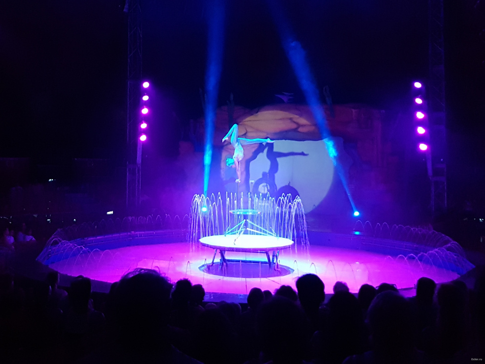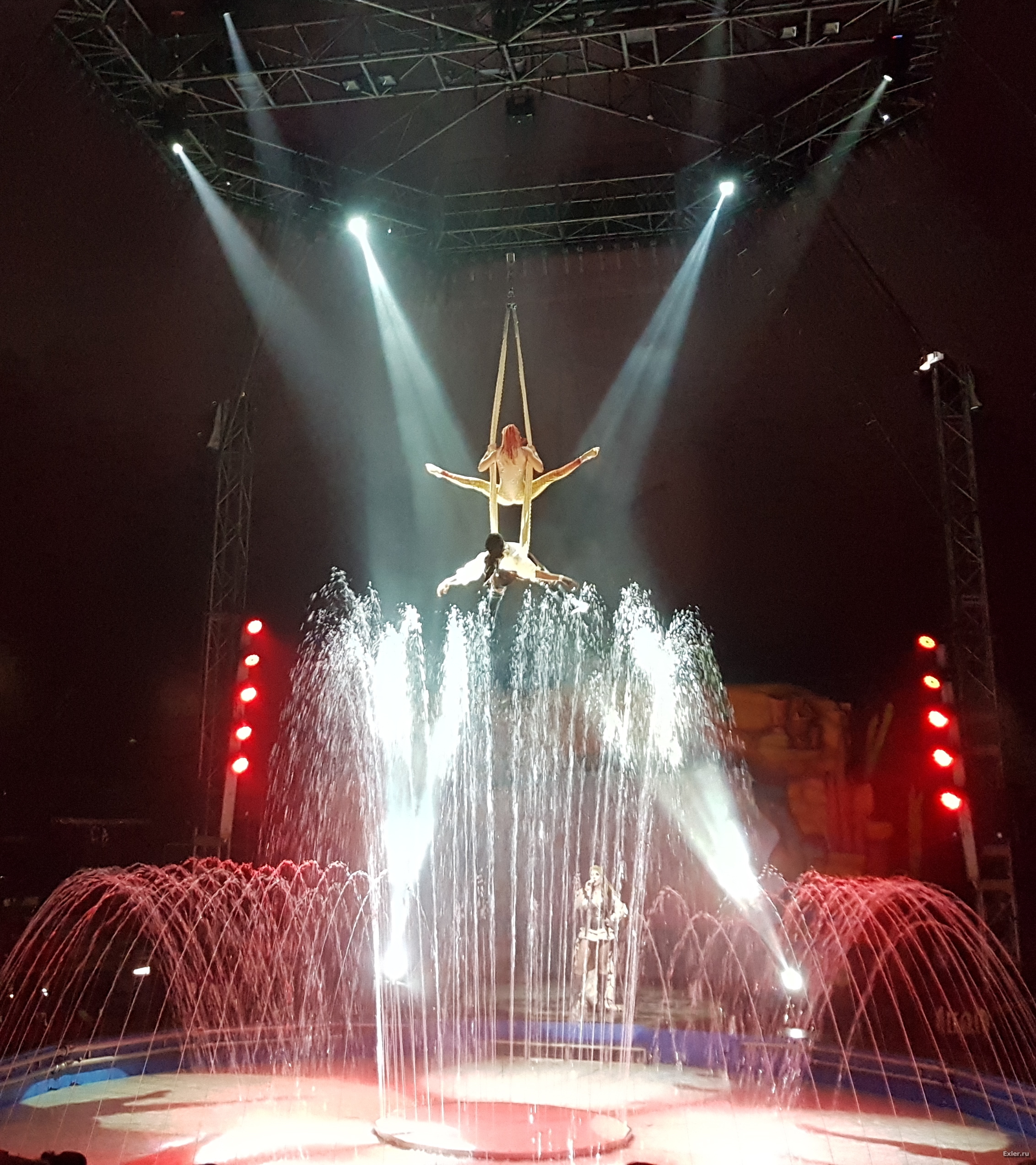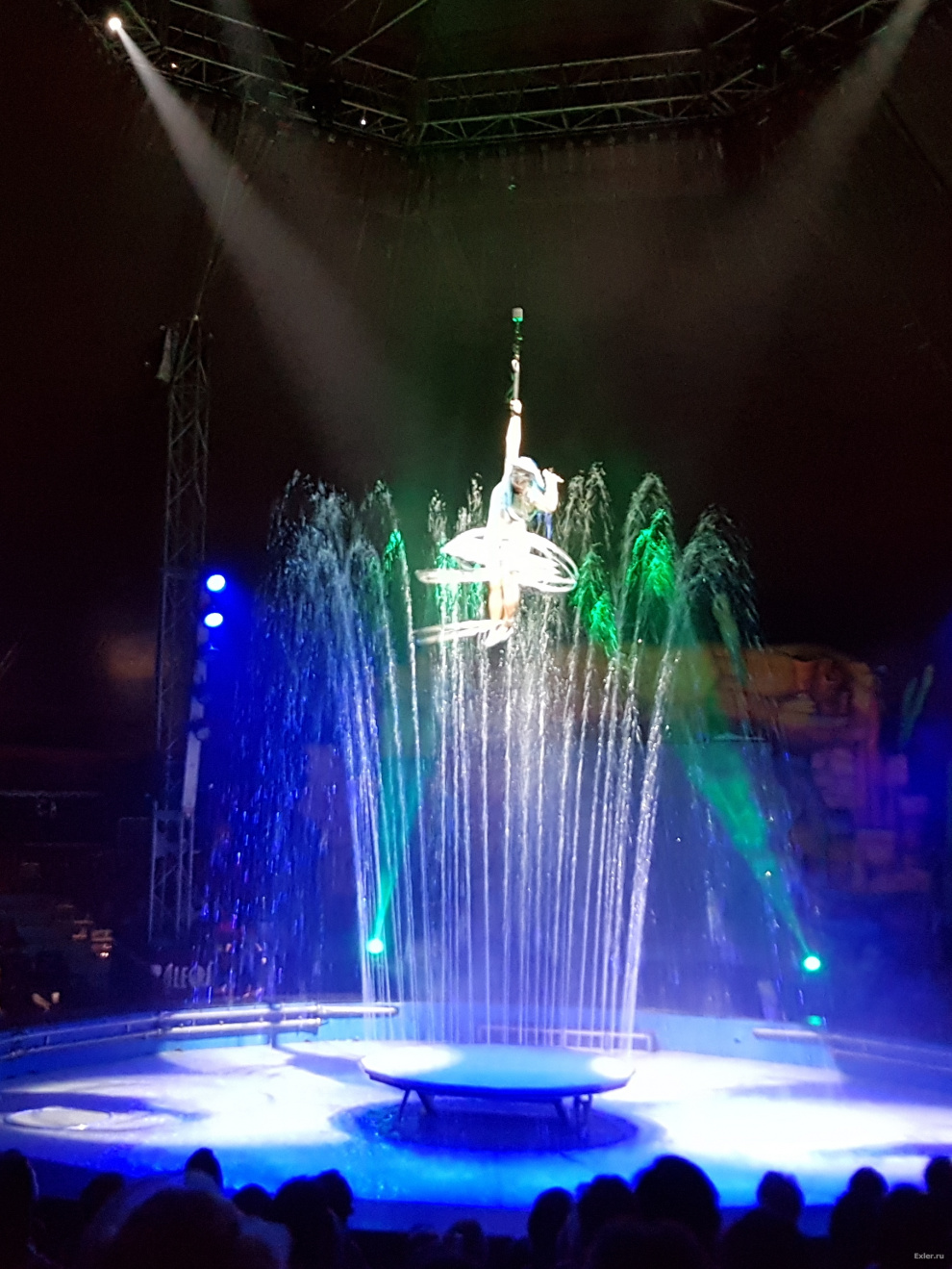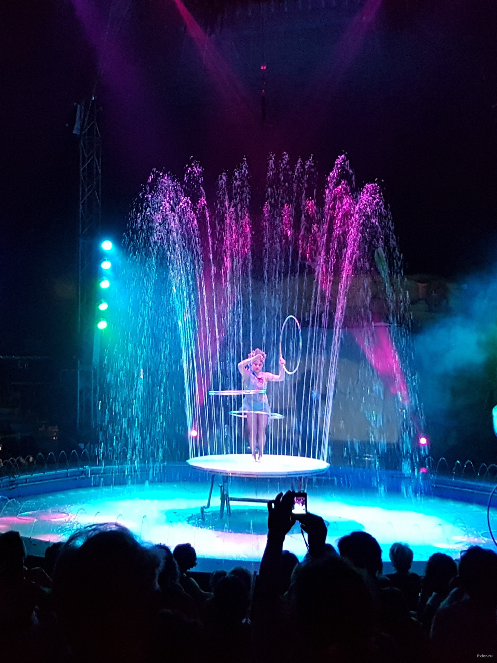 Феерия не феерия, но два круга фонтанных пиписонов уверенно пиписонили, причем все это красиво подсвечивалось прожекторами - смотрелось вполне эффектно. Цирковые номера, в основном, производились внутри фонтанов и над ними.
