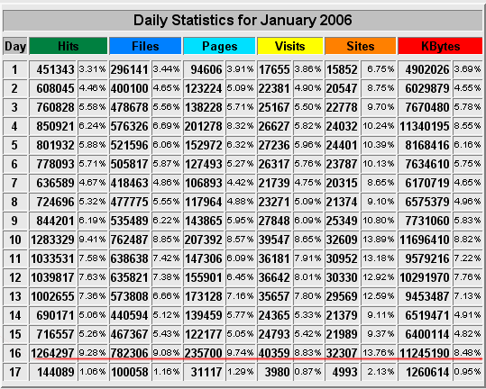 В Webalizer вчера был взят очередной рубеж посещаемости сайта - более 40000 визитов: