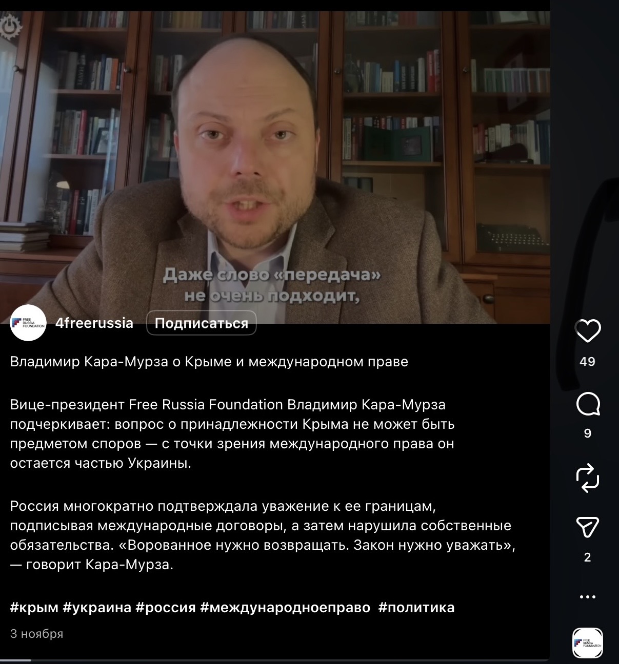 Каспаров в меру сил ведет просветительскую работу в публичном американском информационном пространстве - появляется на CNN, популярных подкастах и т.п. пытаясь донести про-украинскую / антипутинскую позицию. Кроме него, навскидку я больше никого не замечал из оппозиции на таких площадках.