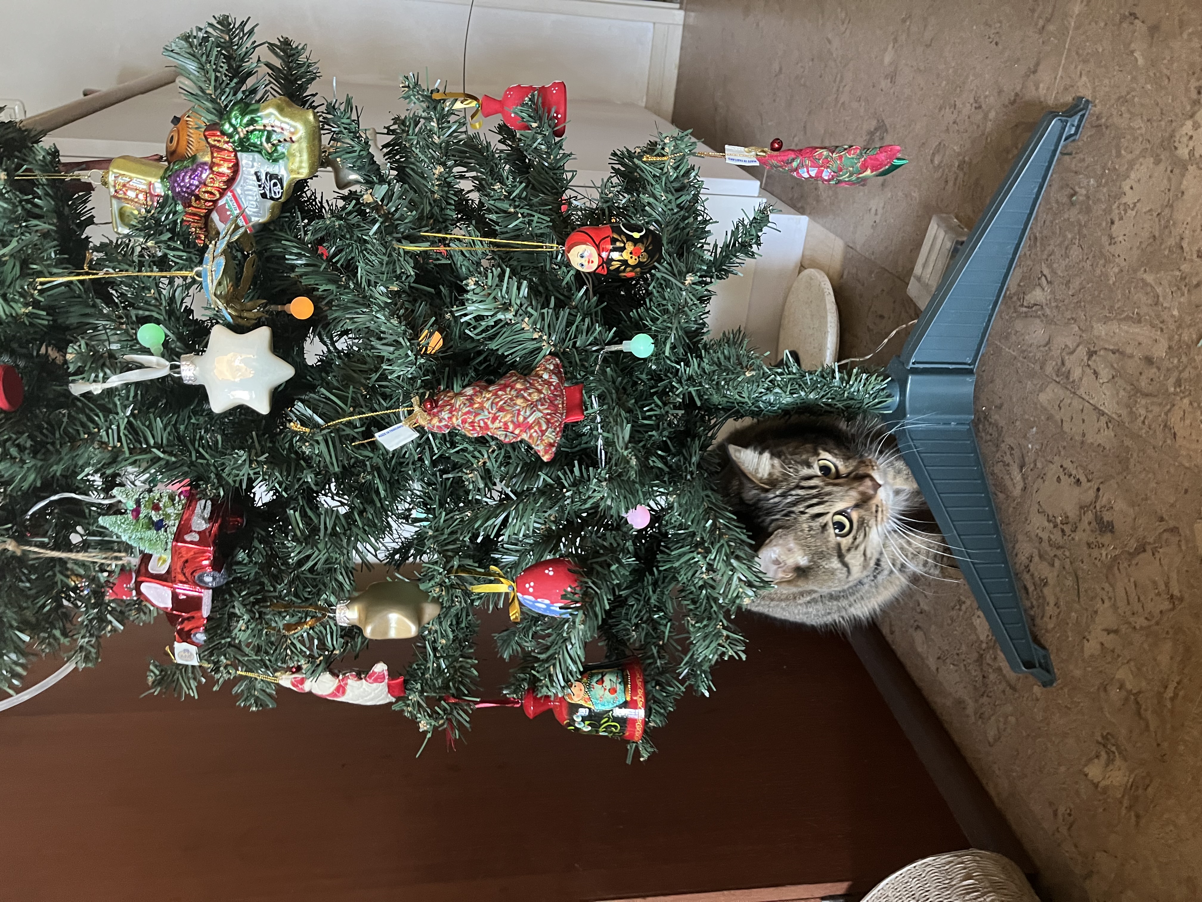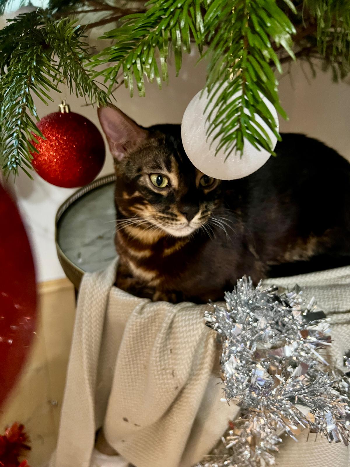 Мы прикупили живую ёлочку в ведёрке. Пушистенькая, где-то метр высотой. До балкона не достанут. Потом посадим в лесу где нить (это уже четвертая посаженная будет)
