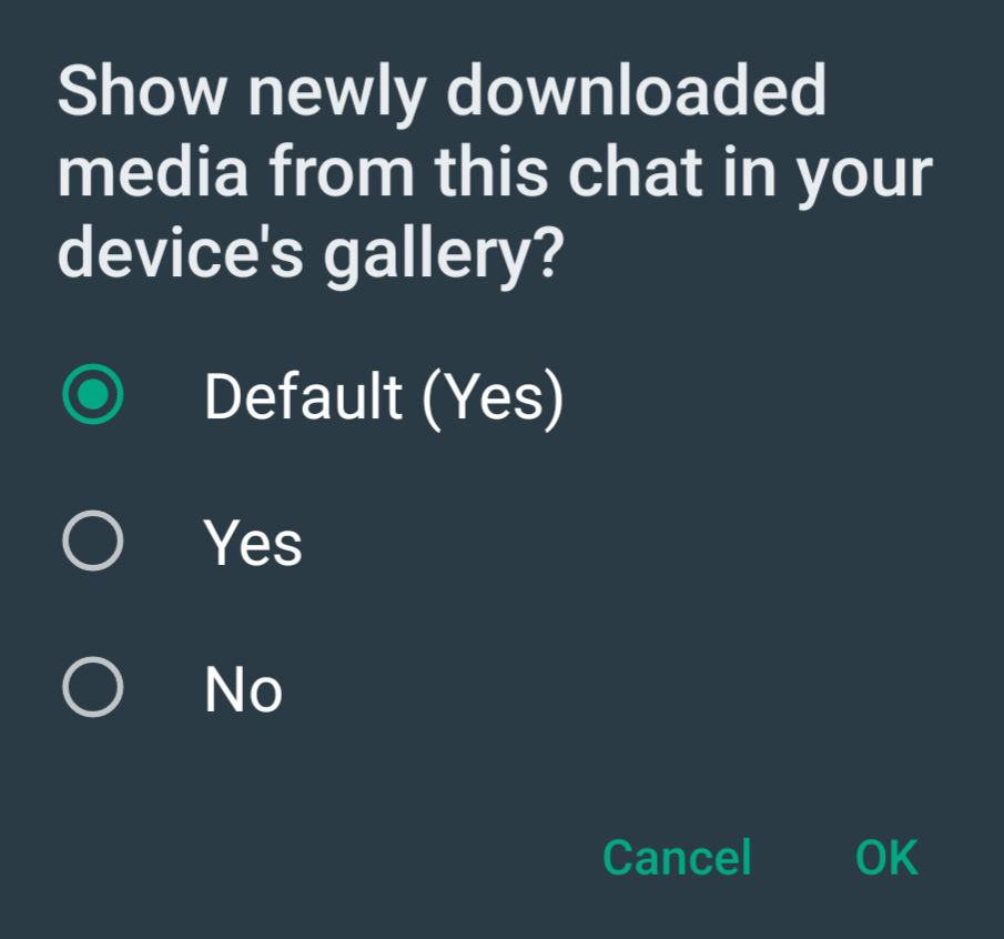 А где отключается чтоб фотки из Ватсапп а общей галерее не отображись? В идеале чтоб фотки одного клиента не отображались, а остальных можно.
