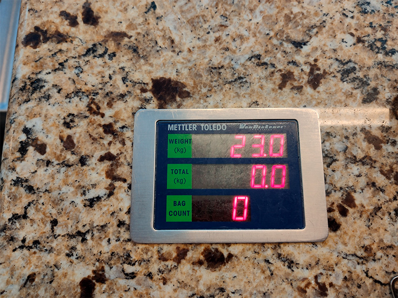 Набил чемодан, проверить вес было не на чем - несколько переживал, что может быть перевес, а перекладывать толком нечего и некуда. Но повезло - смотрите, какая аптекарская точность.