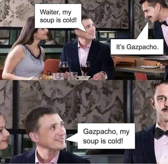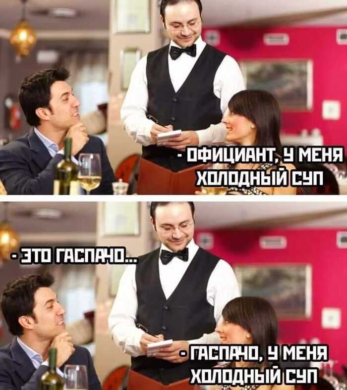 зашли с женой поужинать. Заказали по холодном супу