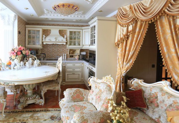 ужас ужасный! быть может, это мир иллюзий? приторный тошнотворный кисель, в основном пошлая безвкусица, ну разве кухня ничего, правда про холодильник напрочь забыли... есть прекрасные примеры дворцовых стилей, которые органично вписываются даже в небольшой номер отеля, но здесь полный ахтунг! как в это можно было вписать кирпич? а с ковром что произошло??? ай да Алекс, умеет удивить, а то было я давно решила, что меня уже ничем не удивишь, или почти ни чем, но тут даже скорее эстетический шок! не могу оторваться от фото, тк не могу понять, что именно двигало этими людьми, если у них нет соответствующей справки, которая могла бы объяснить такое... первый логичный вопрос напрашивается сам собой, который уже озвучен неоднократно: если есть деньги на такую дорогую мебель, то почему бы не увеличить кол-во квадратных метров? зачем себе создавать дополнительные трудности в перемещении? размер стола они не рассчитали... а остальное, по их мнению, все ок? хотя имя данной барышни многое объясняет...