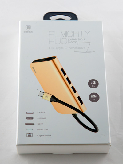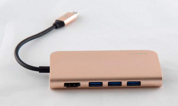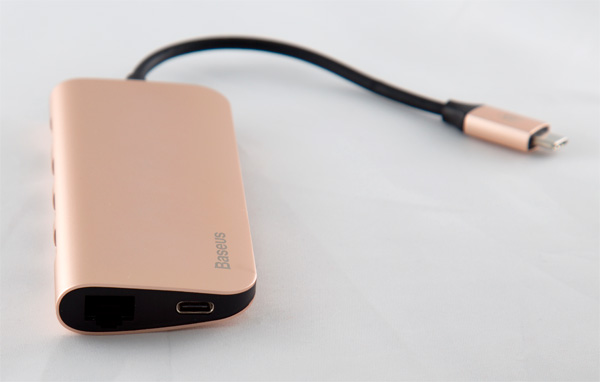 А тут такая штуковина, причем оцените комплект - три порта USB 3.0, HDMI 4K, Ethernet RJ45, SD-reader, microSD-reader, Type-C hub OTG. Реально восемь в одном. Достаточно дорогой - на Али 3720 рублей ($60).