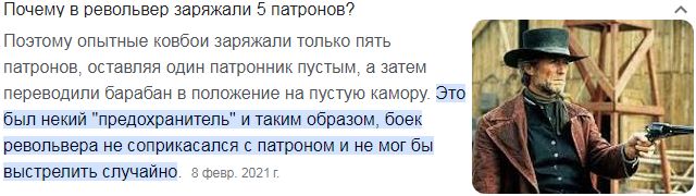 Кроме того, они еще замазывали заряженные каморы барабана салом или воском, чтобы не произошло кольцевое воспламенение при выстреле.