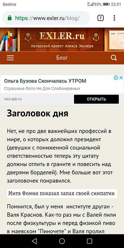 Поздравляю Ольгу Бузову. Раньше всякие придурки заполоняли Adsense заголовками "Дима Билан умер" и "Алла Пугачева скончалась", а теперь еще и Бузова добавилась. Чувиха идет к успеху, однозначно. Да, я знаю, что она уже пришла к успеху и я рад за нее - это интереснейший феномен, за которым я наблюдаю достаточно давно: я первый раз ее увидел на корпоративе издательства "АСТ" лет 13 назад. Она - молодец. Интеллект как у амёбы, певица хуже Брежневой (дальше-то некуда), а ведь прет и прет. Респект и уважуха! Причем совершенно серьезно.