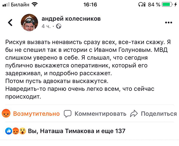Журналист Андрей Колесников в Facebook. Он бы не спешил.