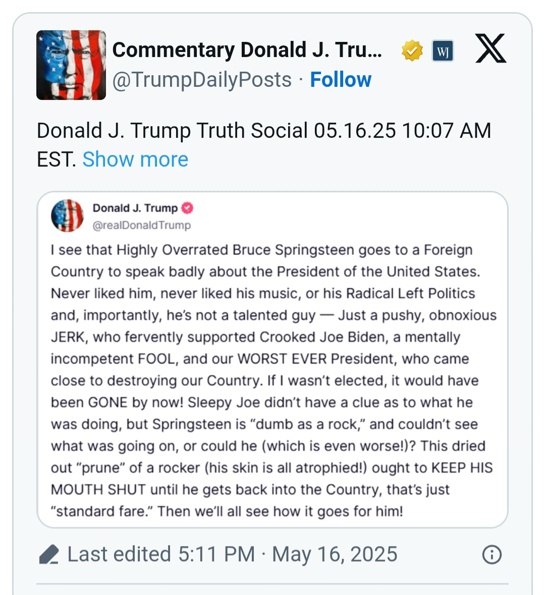 Про спрингстина - известного антисемита и коммуняку он по делу высказался.