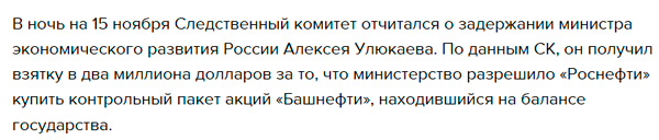 А подобным образом они показывают, что Улюкаева взяли, конечно, не за взятку. А за ПОТЕРЮ ЛОЯЛЬНОСТИ! Где-то что-то Улюкаев явно не долоялил, вот что я вам скажу!