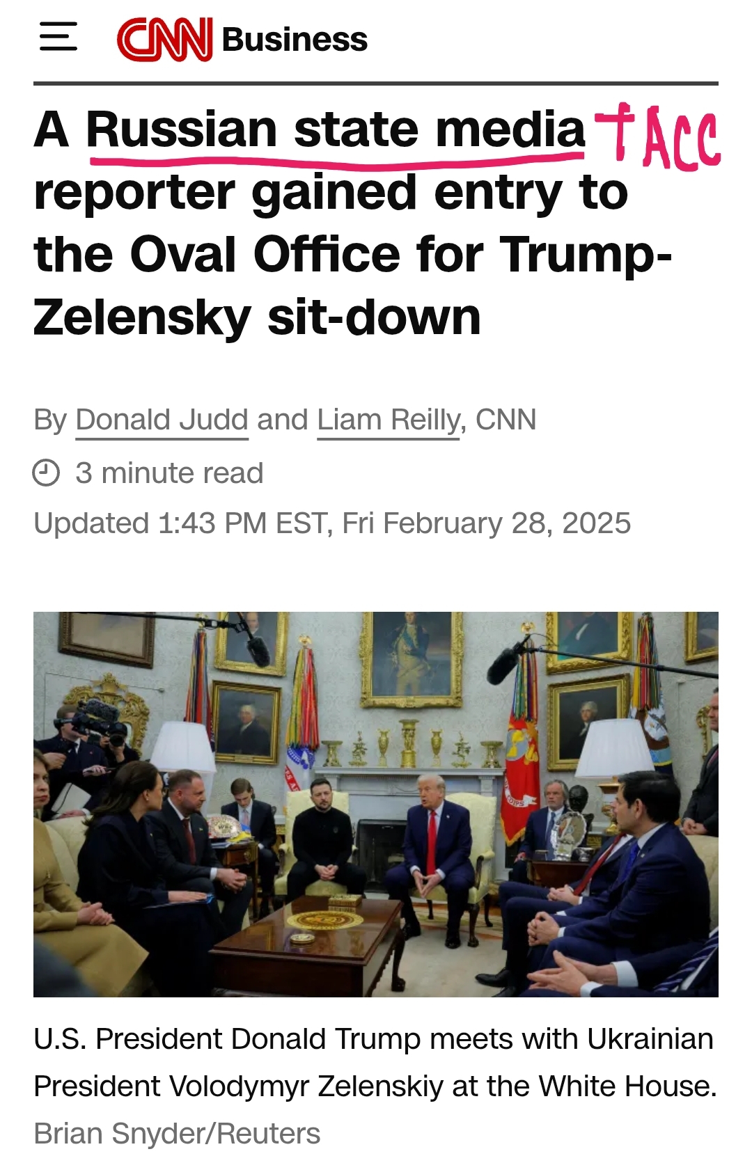 И вы как будто не замечаете, что на этой встрече "случайно и не по плану" было публично подтверждено то, что уже продвигали много раз Орбан, множество республиканцев и сам Трамп: якобы недоговороспособность Зеленского. Какое совпадение.