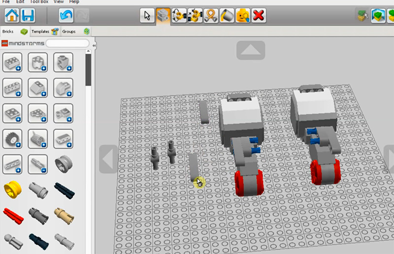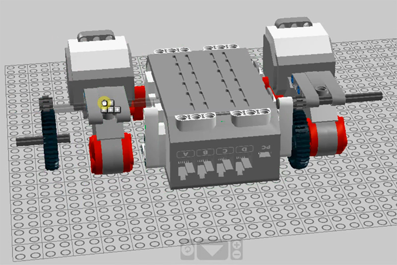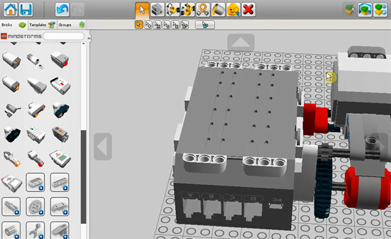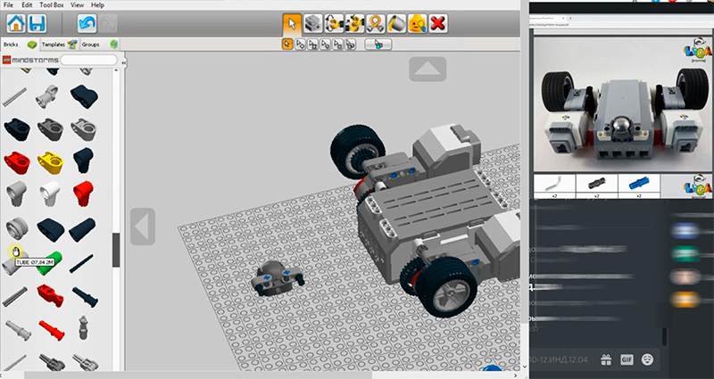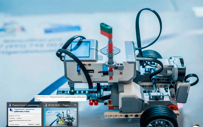 После этого через удаленный рабочий стол ученик подключается к среде разработки LEGO Digital Designer и там начинает сборку механизма.