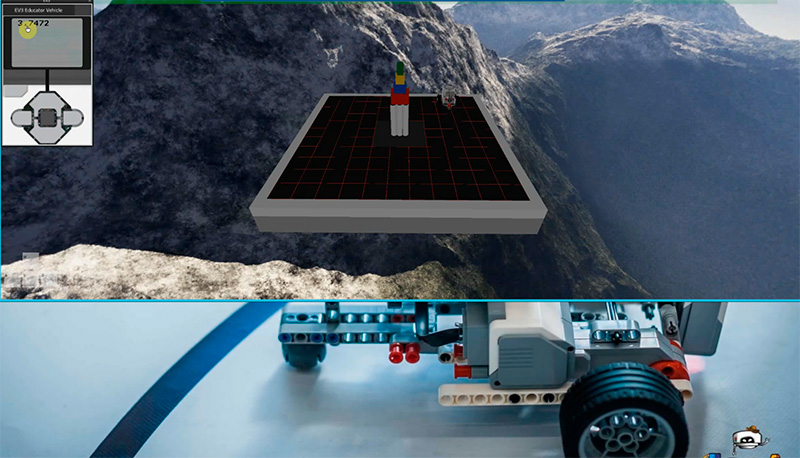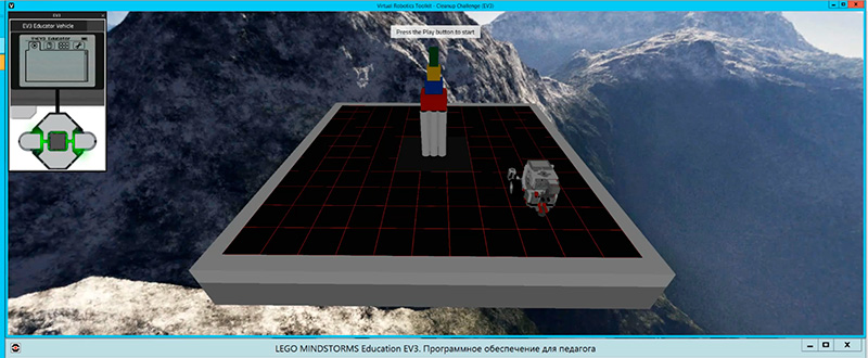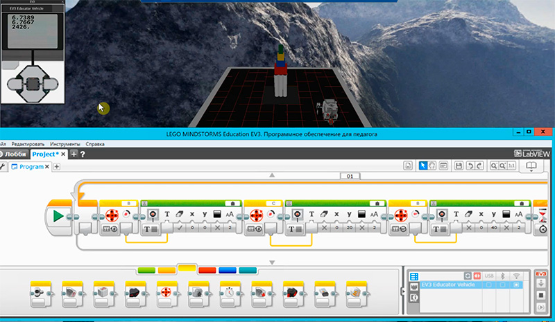 После того как робот создан, ученик подключается к среде Virtual Robotics Toolkit, в которой производится программирование алгоритма работы созданного механизма.