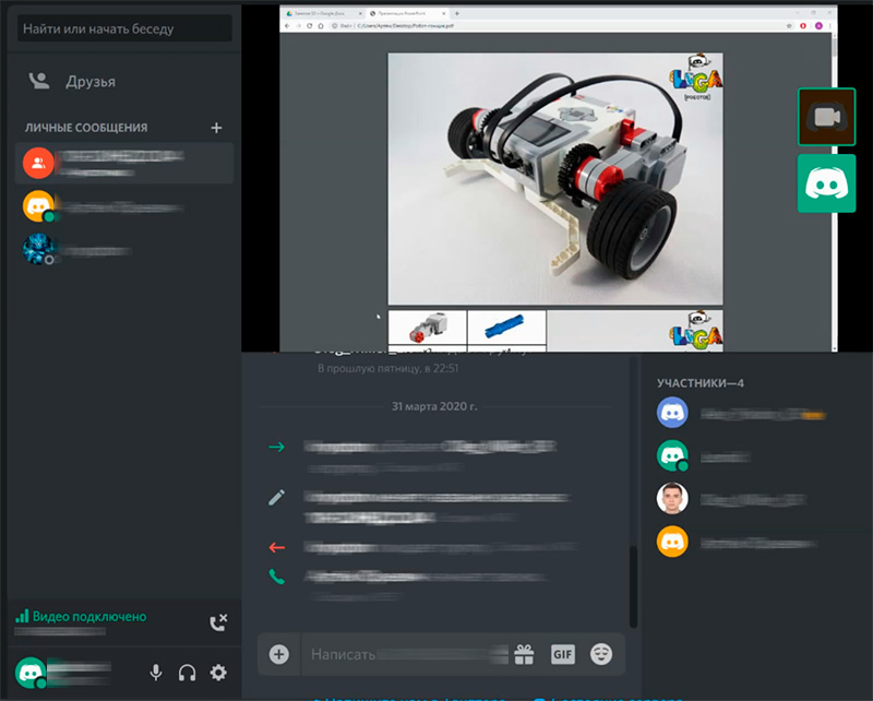 Занятие начинается в клиенте Discord: преподаватель объясняет группе, чем они сегодня будут заниматься. При этом он может демонстрировать соответствующие материалы - например, реальный механизм, который они сейчас будут собирать.
