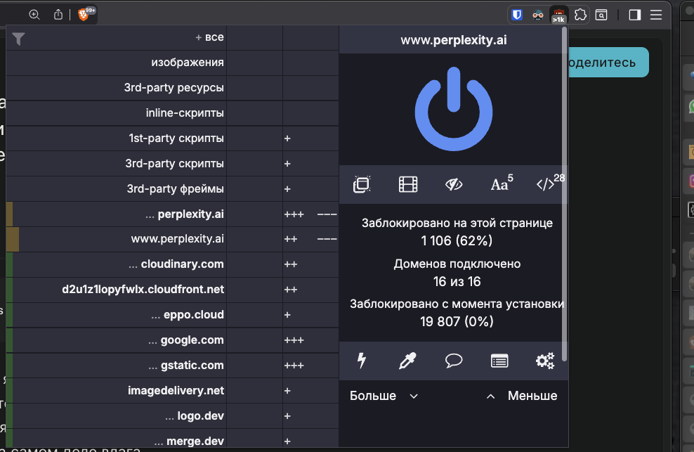 чрезвычайно много блокирует uBlock на perplexity.ai и вообще ничего на chatgpt.com