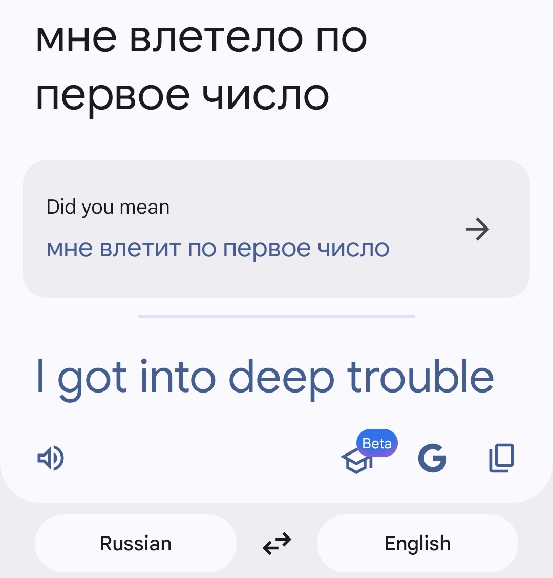 А у Реверсо просто констатация факта — «попал в беду» и всё. Без последствий и без «по первое число».