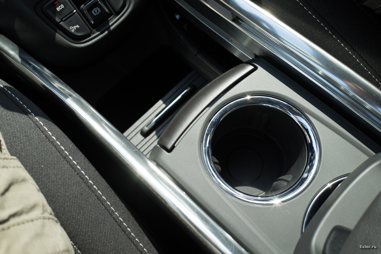 Вот, например, отсек справа от водителя. У него есть три режима использования: подлокотник, подставка под банки-бутылки, глубокий отсек со шторкой - все это регулируется.