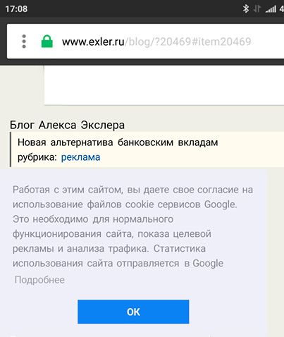 Тут несколько человек жаловались, что в Opera Mini (которая для мобильных телефонов) сообщение об обработке куков компанией Google (такое сообщение в обязательном порядке появляется у всех сайтов, работающих с Google Adsense) глючит: там не нажимается кнопка "ОК", из-за чего получается неприятная ситуация: сообщение висит и убрать его нельзя.