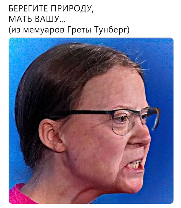и тут найдете ту самую Грета Турнберг, только в менее толерантной упаковке.