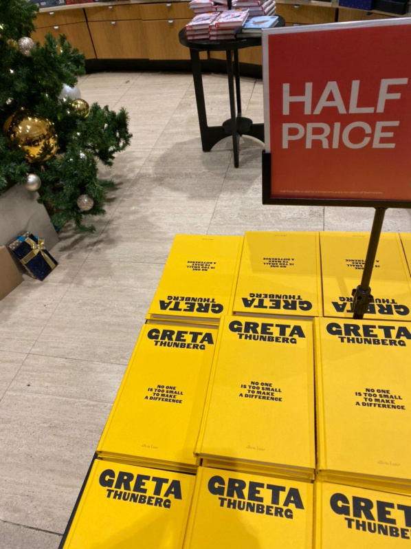 На вновь созданном бренде Грета Тунберг предприимчивые люди пытаются стричь баблецо. Оперативненько накатали за нее книжку и выставили на продажу в Лондоне. Однако ожидаемого ажиотажа не случилось - эту ерунду никто не покупает. В телеграм-канале "Антиглянец" пишут, что видели эту книжку уже в третьем магазине, и ее никто не берет. Уже цену вполовину снизили - не помогло. С Бузовой эта история прокатила лучше.