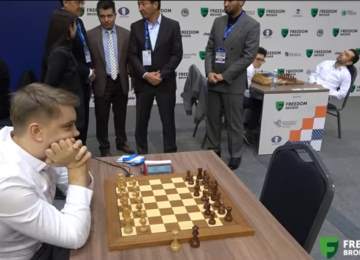 (Кстати, в испанском издании пишут, что Ковалев (его фамилию там неправильно написали как Kovalek, да и еще зачем-то назвали россиянином, хотя он беларус и выступает под флагом FIDE) не хотел начинать матч без соперника, но этого потребовал судья, чтобы не нарушать регламент чемпионата.)