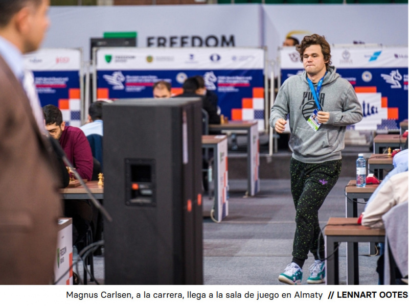 В первом раунде норвежец Магнус Карлсен опоздал на игру с беларусом Владиславом Ковалевым аж на две с половиной минуты, причем пришел он на игру в горнолыжном костюме. У него оставалась всего 31 секунда. И посмотрите, как красиво он выиграл - песня просто!