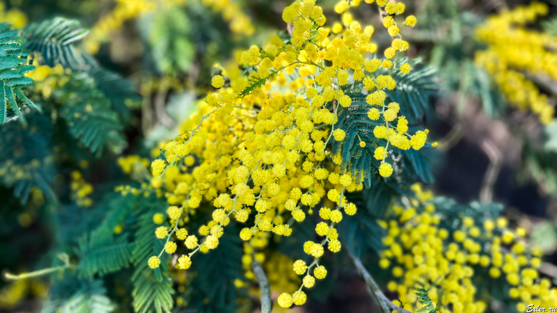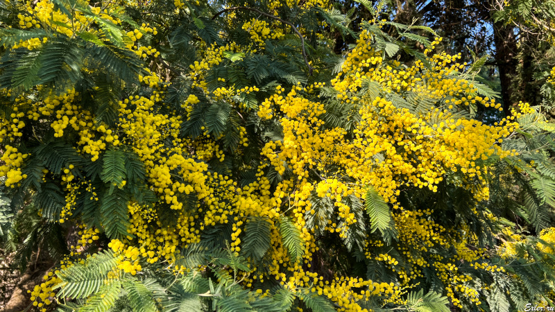 Признаюсь, я и сам только что узнал что вот эта желтая хрень, которую мы называем мимозой, есть разновидность акации. Настоящая мимоза выглядит совсем иначе.