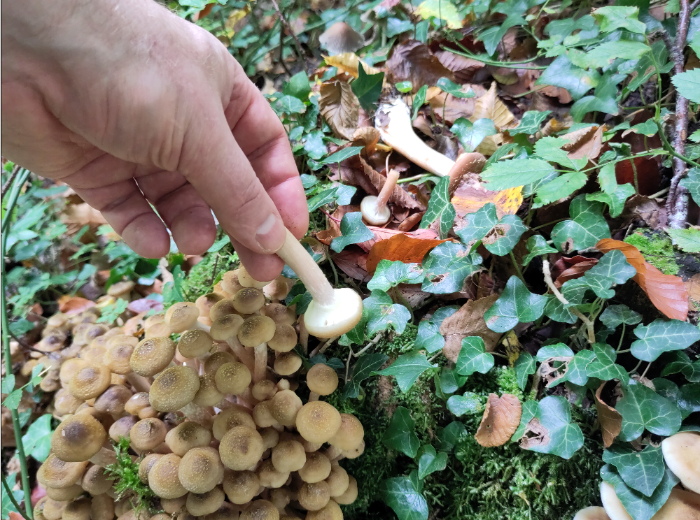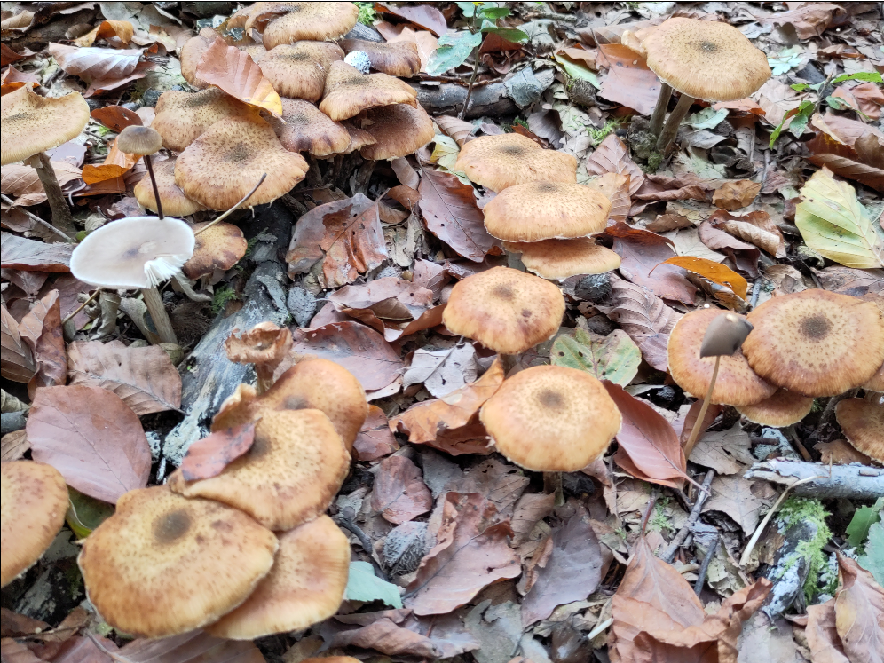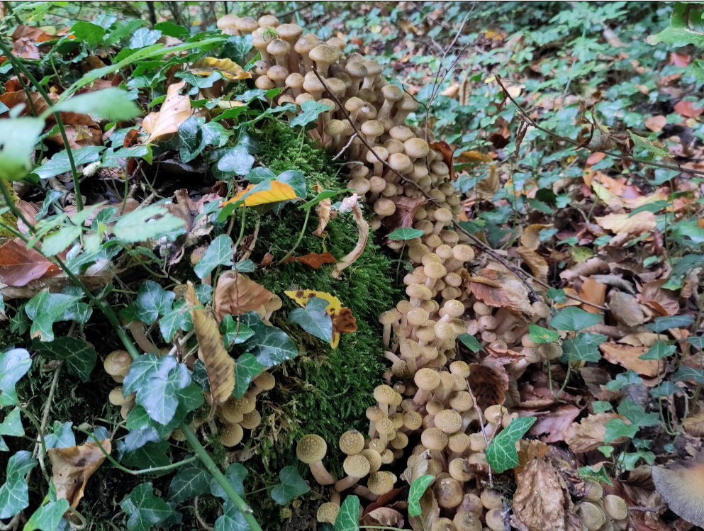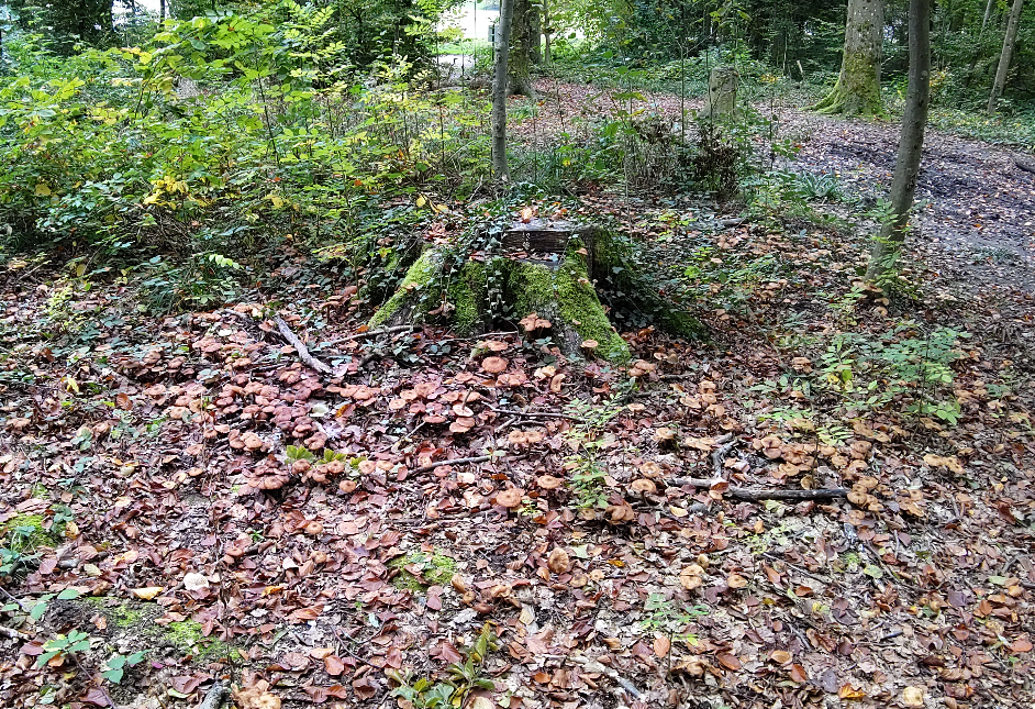 Офф, но тоже про осень. Имеем опята на швейцарско-немецкой границе. На вид опята как опята, только почему-то вокруг них летает много мух. Это меня настораживает. Еще они тут частенько из земли торчат прямо около парковок. Такие неохота собирать. Но те, которые на пнях, думаю собрать завтра. Местные их не берут, они какие-то пластинчатые берут, которые ведьмиными кольцами. Удачи им.