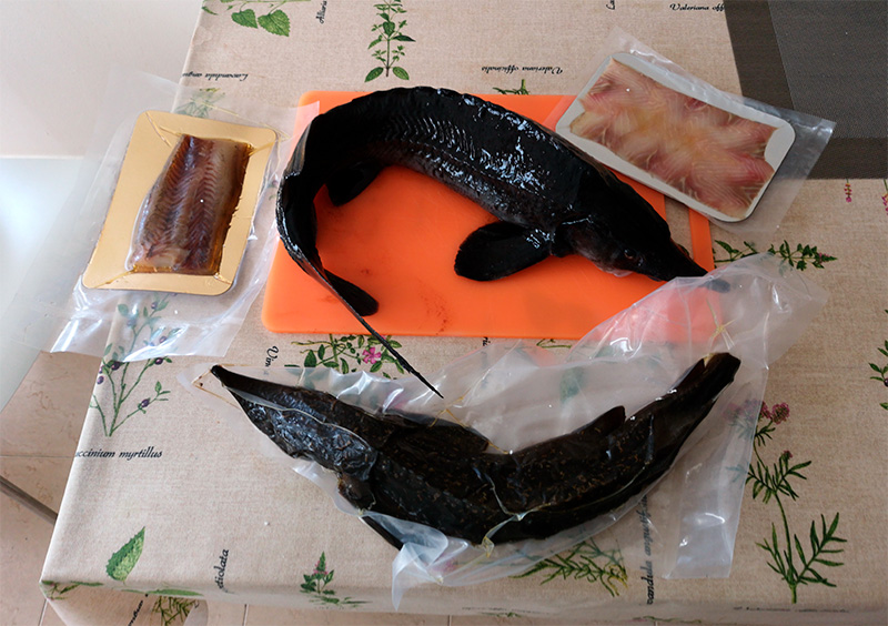 Ну вот я и заказал попробовать: осетр свежий, осетр горячего копчения, осетр холодного копчения. Кот Бублик находится в предвкушении.