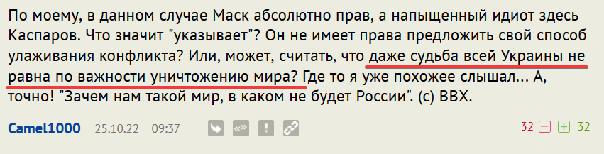 Но Camel.... плюсов-то больше. Украинец просто не может не поставить Вам минус. Ведь тогда он будет как бы против Regs`а 😄 Сами подумайте: за россиянина и против украинца. Даже если россиянин прав