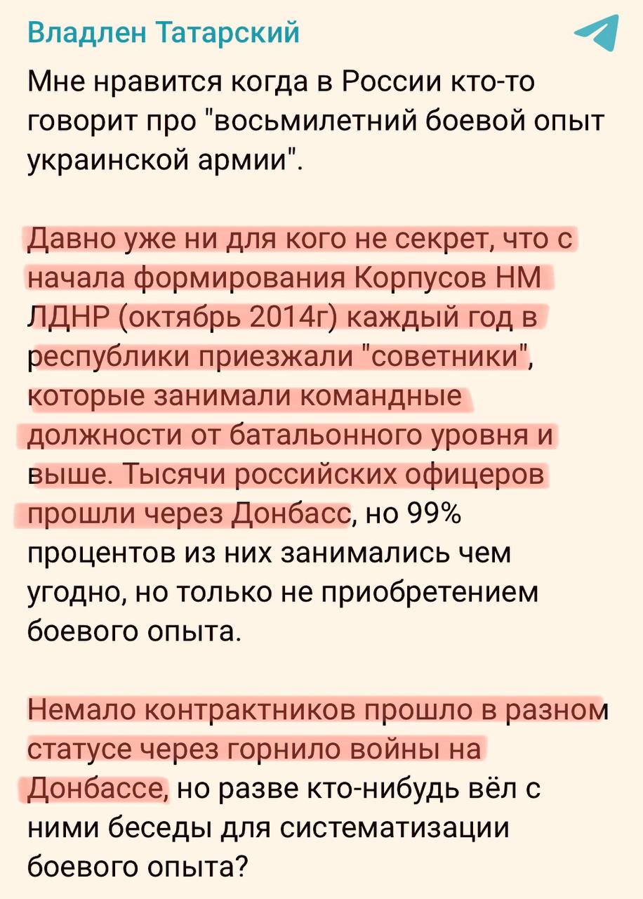 Не знаю как вы, но лично я привык судить об эффективности компаний по конкретным результатам их труда. И я теперь вижу, что результата у этих оппозиционных образований нет: путлером без особых проблем развязана кровавая полномасштабная война. Следовательно, встает вопрос: а для чего нужны были тогда все эти компромиссы с режимом, если результата по итогу ноль? Кому помогли эти все "оппозиционные точки зрения"?