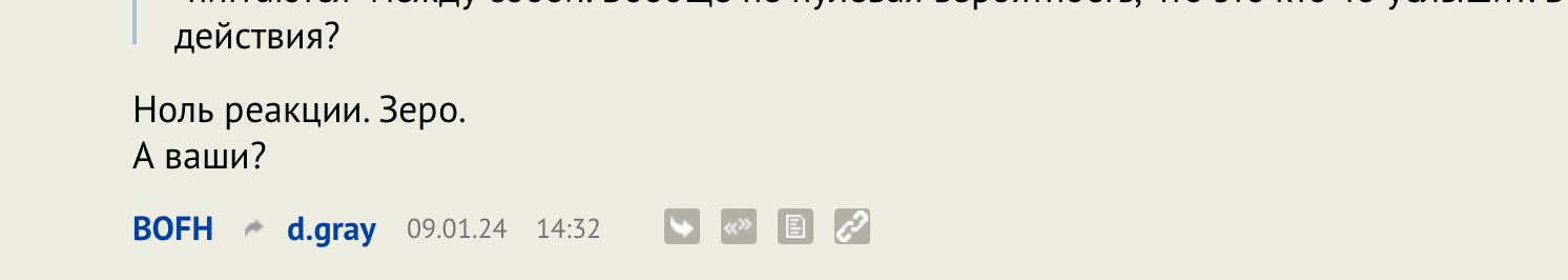 *хотя вру, один раз на оружейную тему удалось получить внятный ответ, я аж офигел тогда
