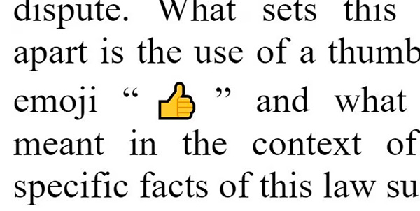"Суд с готовностью признает, что эмодзи [большой палец вверх] является нетрадиционным способом "подписания" документа, но, тем не менее, в данных обстоятельствах это был верный способ передать две цели "подписи"", - написал Кин в своем решении.