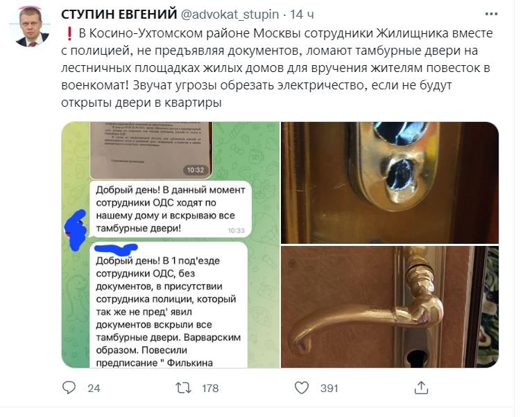 А тем временем в Москве полиция начала вскрывать замки в домах военнообязанных, чтобы вручать повестки.